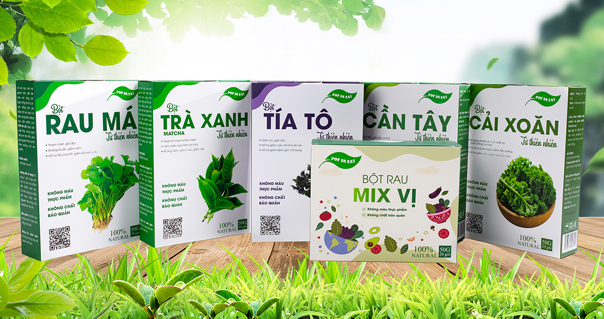 Bột rau củ nhà Pof Da Lat được sản xuất từ 100% rau tươi nguyên chất – từ vùng nguyên liệu chuẩn VietGap với đa dạng các loại rau củ như: cần tây, cải xoăn, rau má, tía tô, trà xanh.